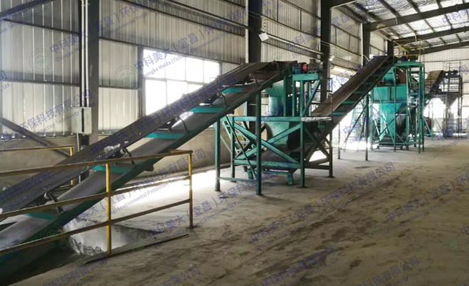 二次陳化:發(fā)酵罐輸出的物料,經(jīng)過(guò)皮帶運(yùn)輸機(jī)送至陳化槽,物料的水分降至40%以下時(shí)候,進(jìn)行15-20天以上的陳化,陳化期間利用槽式翻拋機(jī)翻動(dòng),陳化后期溫度逐漸下降,高溫階段中必然造成微生物的死亡和活動(dòng)減少,有機(jī)質(zhì)降解的熱量逐漸減少,嗜溫型微生物逐漸開(kāi)始占據(jù)優(yōu)勢(shì),對(duì)于殘余難分解的有機(jī)物做進(jìn)一步分解,但微生物的活性普遍下降,堆體發(fā)熱量減少,溫度下降,有機(jī)物趨于穩(wěn)定,需氧量大大減少,堆肥進(jìn)入后熟階段,溫度穩(wěn)定在40℃時(shí)候,水分下降到30%時(shí)候,堆肥腐熟并且腐殖化。